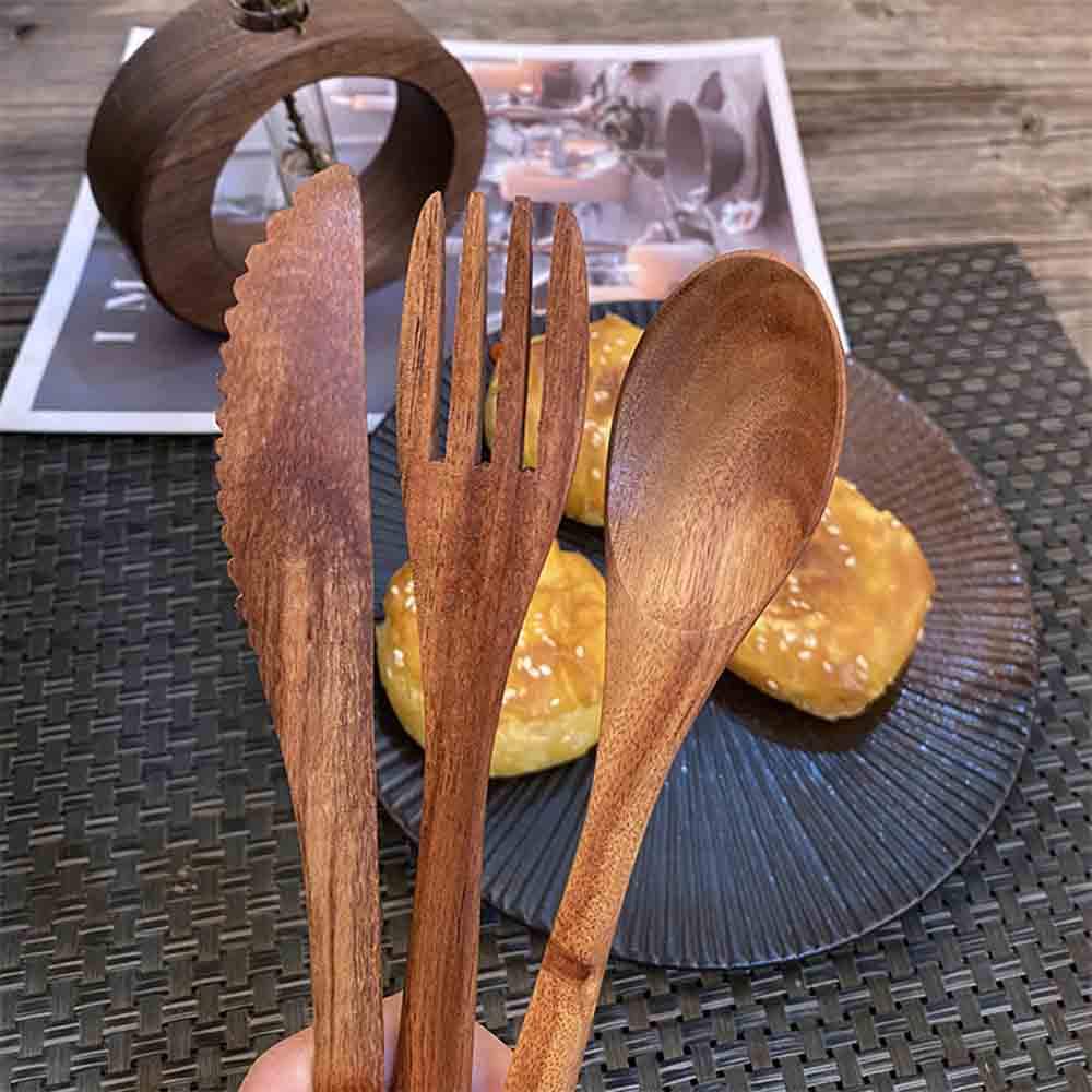 Each piece boasts a smooth, polished finish that feels comfortable in your hand while being durable enough for everyday use. Whether you’re enjoying a picnic in the park, camping in the great outdoors, or simply eating at home, this wooden cutlery set adds a warm, natural touch to every meal.